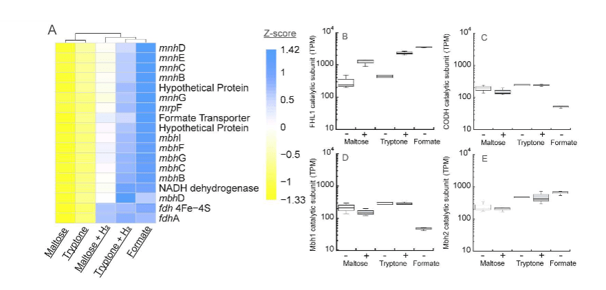 Topcuoglu BD, Meydan C, Orellana R, Holden JF. Formate hydrogenlyase and formate secretion ameliorate H2 inhibition in the hyperthermophilic archaeon Thermococcus paralvinellae. Environmental Microbiology. (2018). doi: 10.1111/1462-2920.14022.