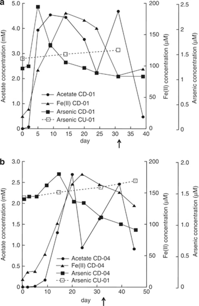 L. Giloteaux, D.E. Holmes, K.H. Williams, K.C. Wrighton, M.J. Wilkins, A.P. Montgomery, J.A. Smith, R. Orellana, C.A. Thompson, T.J. Roper, and D.R. Lovley. Characterization and transcription of arsenic respiration and resistance genes during in situ uranium bioremediation. The ISME Journal (2013) 7: 370–383; doi:10.1038/ismej.2012.109.