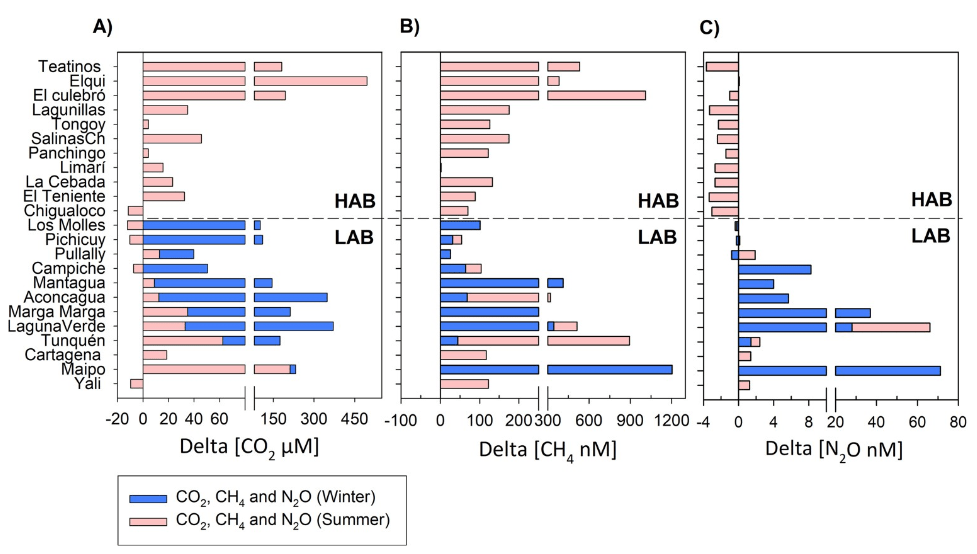 Francisco Pozo-Solar, Marcela Cornejo-D´Ottone, Roberto Orellana, Daniela Yepsen, Nicolás Bassi, Julio Salcedo-Castro, Polette Aguilar-Muñoz, Verónica Molina. Dissolved greenhouse gases and benthic microbial communities in coastal wetlands of the Chilean coast semiarid region. Plos One (2022). https://doi.org/10.1371/journal.pone.0271208.